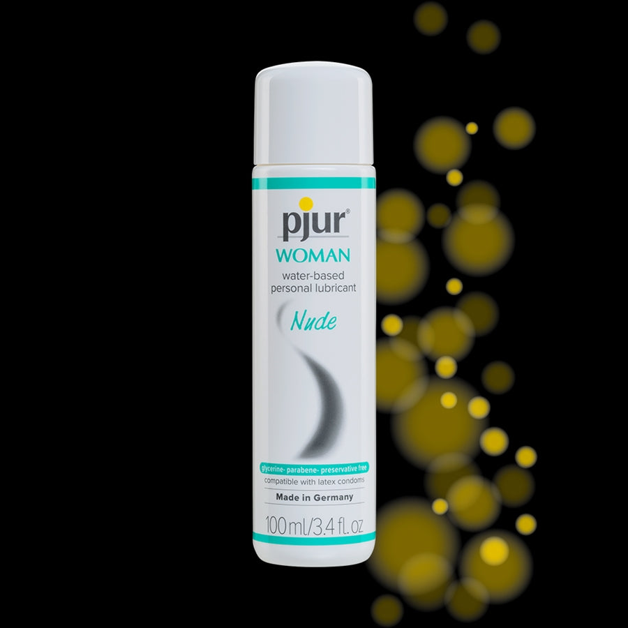 pjur WOMAN Nude: Neutral, water-based premium lubricant without additives - designed especially for soft and sensitive female skin. Preservative free - glycerine free - free from parabens - oil free and non greasy - fragrance free - odorless and neutral in taste - highly concentrated - skin and mucous membrane compatibility dermatologically confirmed - moisturising - leaves a silky smooth feeling - nurtures and protects dry and stressed skin / mucous membrane - suitable for use with latex condoms - not a contraceptive - for everyday use