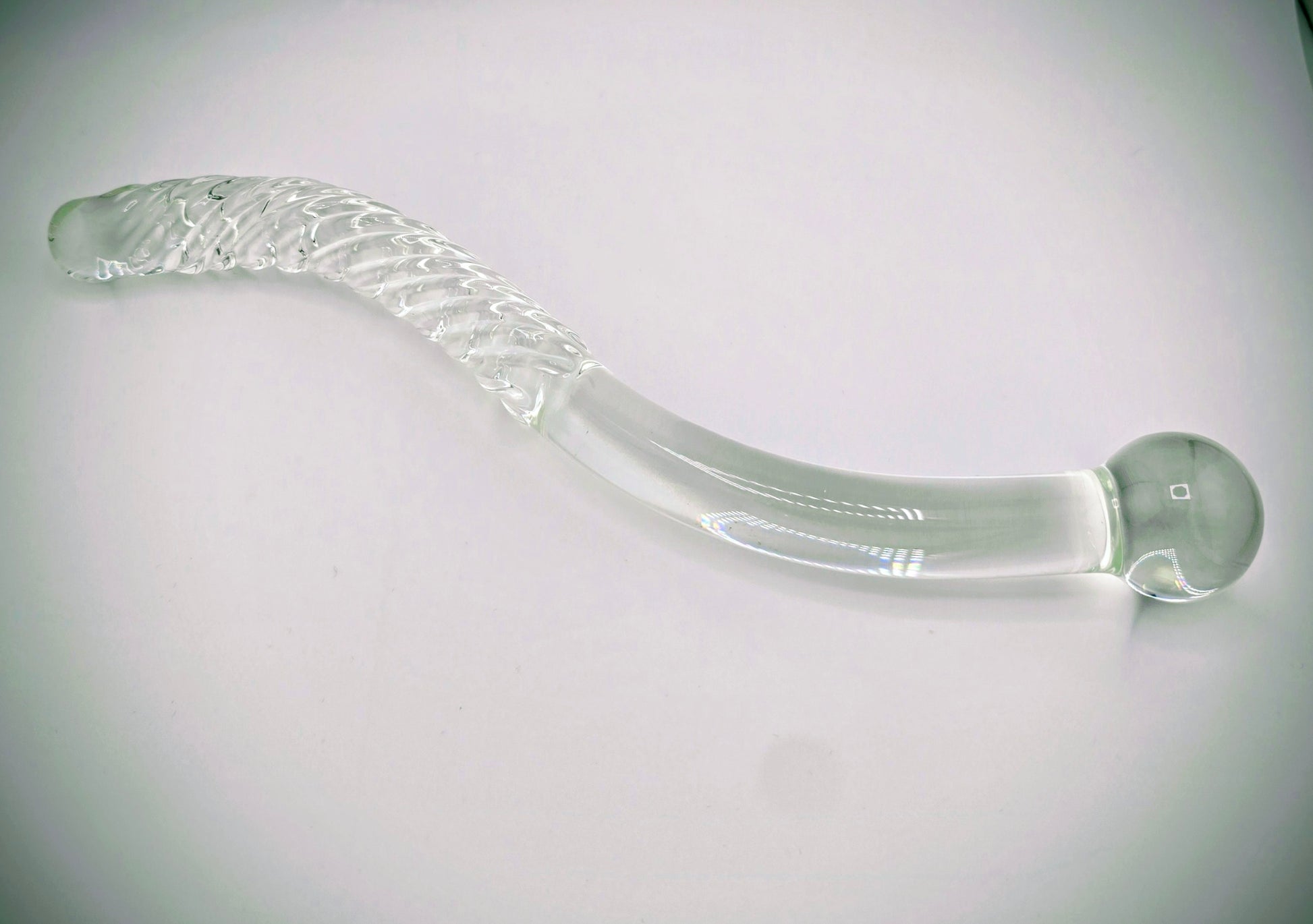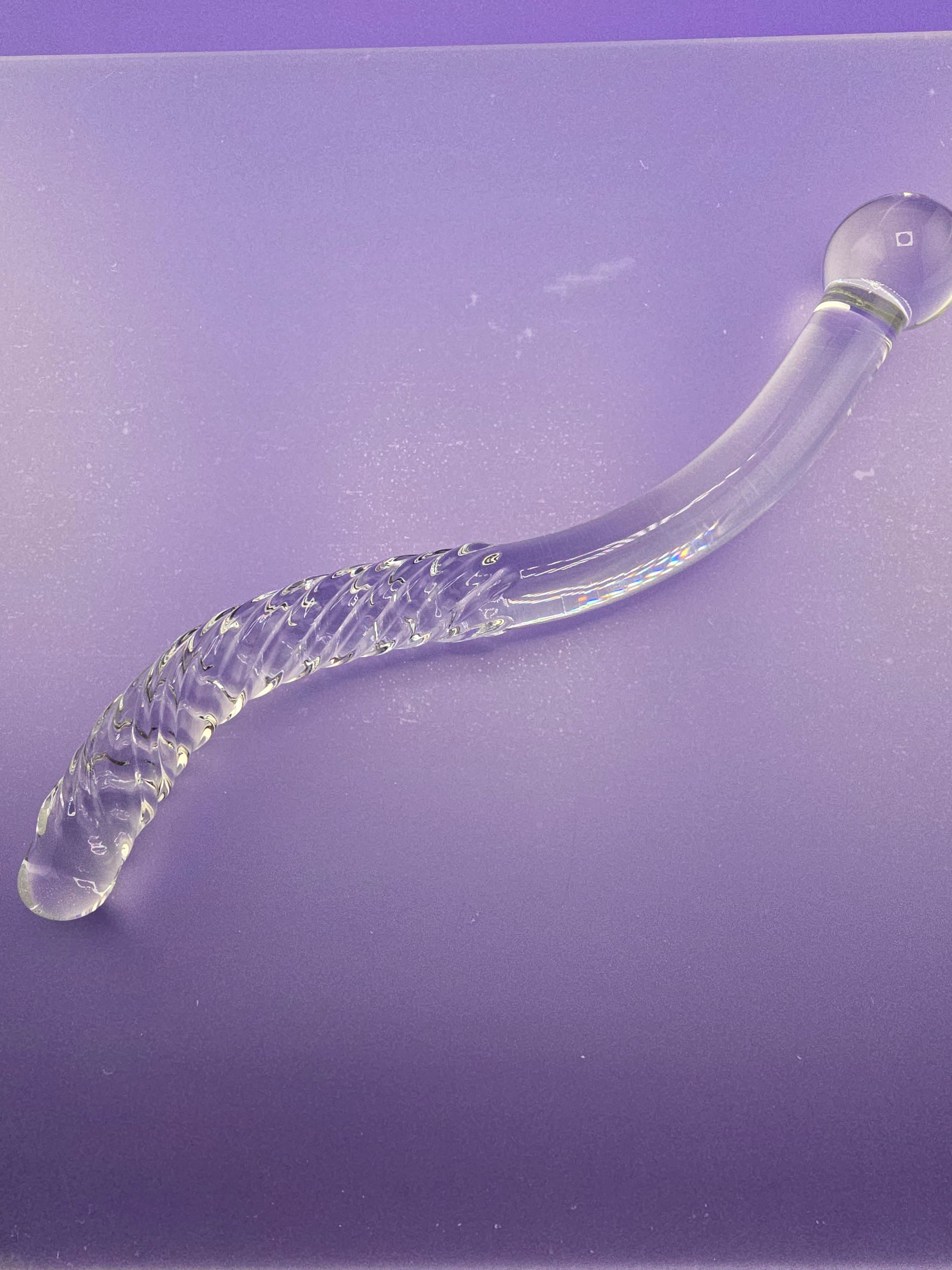 Nectar Products 的豪華壓克力水晶棒由美觀、安全、有效、防碎且可清洗的 Pyrex 玻璃製成。這款 8.75 英寸長的彎曲魔杖的細長波紋端直徑僅為 5/8 英寸,球端直徑為 1.25 英寸,重量僅為 7 盎司。