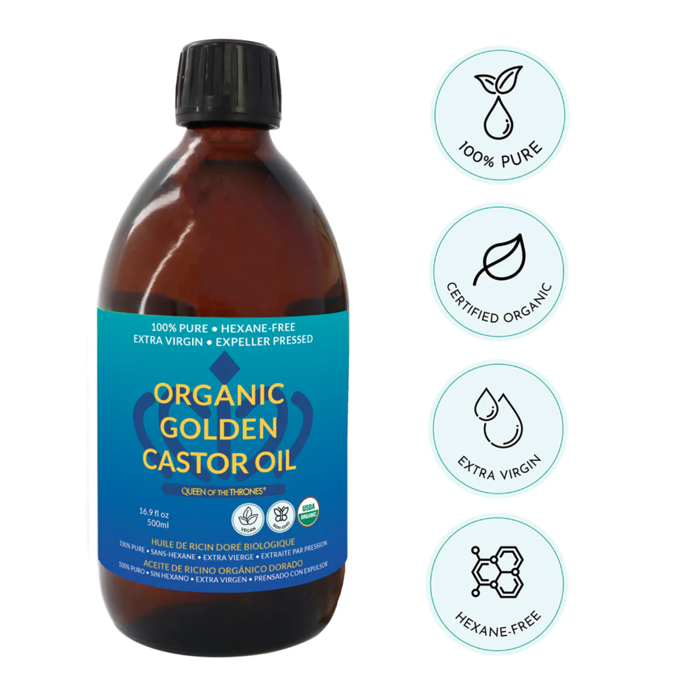 始終選擇 100% 純正、經有機認證、特級初榨、不含己烷的玻璃瓶裝蓖麻油,如《權力的女王》。